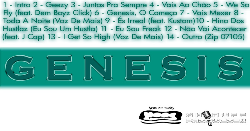 Para toda a gente que gosta de Hip Hop no geral agora já podem ter o álbum mais versátil de sempre. Geezy acaba de lançar o seu primeiro álbum intitulado “Génesis“, com participações de J Cap, Kaz (Voz De Mais), entre outros. Baseado no Hip Hop, mas com temas tipo Rap, RnB, Reggeaton, House, entre outros, é dos melhores álbuns de sempre no Hip Hop Português, e tu podes te-lo já fazendo a tua encomenda em geezy@live.com.pt
