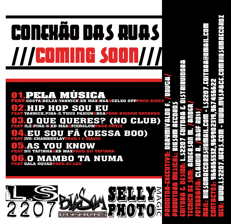 Compilação “Conexão das Ruas” que esta a ser promovida pela editora LS2207 e a produtora musical BigSom Records. Conexão das Ruas é a mais breve afirmação do rap em português!!!